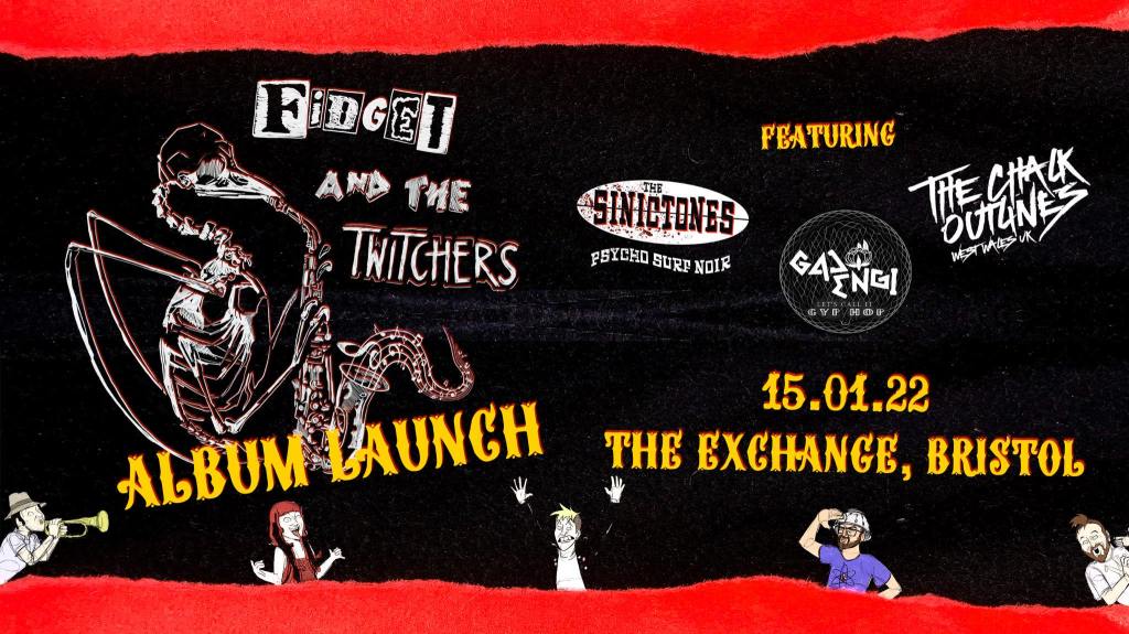 Fidget and the Twitchers were formed when Danny Fidget moved from Cornwall to Bristol with a head full of steam and a heart full of Ska. Combining with funk bassist Ben and creative drummer Lloyd, rambunctious horns Anna (Sax) and Tom (Trumpet) soon joined the fray. Having laid down the foundations for flavoursome ska-punk harnessing elements of; punk, ska, swing, funk and hip hop, they’ve created a high energy show with intrigue.
